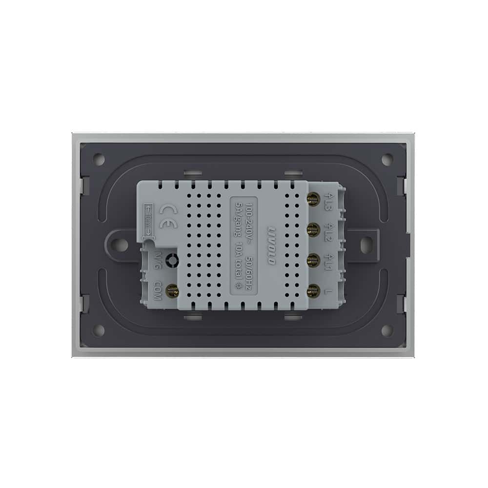 Intrerupator triplu cu touch Livolo din sticla, cap scara / cap cruce, cu protocol ZigBee. Panoul este confectionat din sticla de crystal, si are un indicator de lumina. Acesta este rezistent la umiditate si la zgarieturi. Intrerupatoarele Livolo folosesc un senzor tactil cu 100 ms timp de raspuns, similar cu tehnologia folosita la smartphone-uri. Panoul din sticla al intrerupatorului, este din sticla securizata, rezistenta la foc. Ledul rosu/albastru indica statusul on/off al intrerupatorului. Poate fi actionat: – Direct de la intrerupator on/off prin atingere; – De pe smartphone cu ajutorul Hub-ului Livolo ZigBee prin aplicatia Livolo (hub-ul se achizitioneaza separat); – Vocal cu Google Home sau Amazon Alexa. Intermediar intre intrerupator si Google Home sau Amazon Alexa aveti nevoie de Hub-ul Livolo ZigBee.